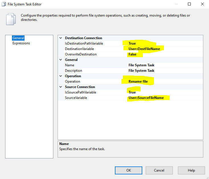 DestFileName : This variable is used for Dynamically setting the filename. We can write expression how to rename the files.